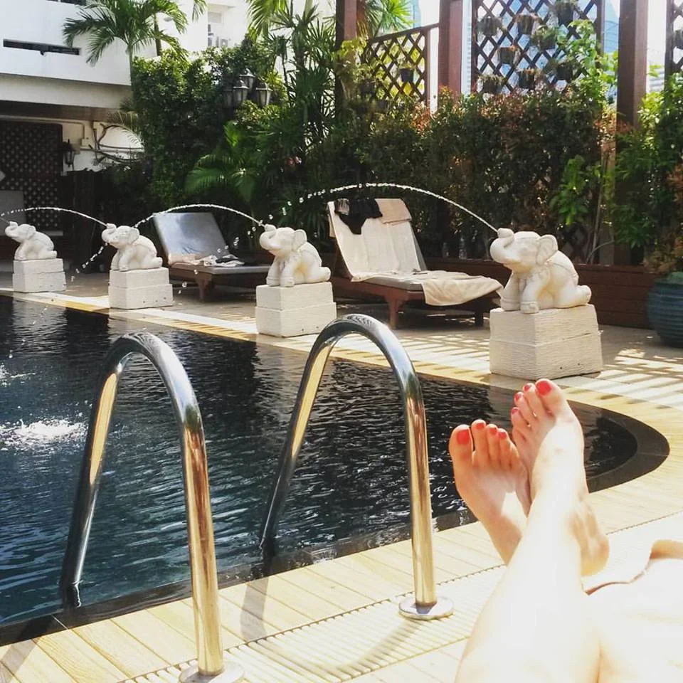 I learned this lesson our first day in Chiang Mai when I was at the pool, lounging in the sun next to a gorgeous little garden and four fat, smiling, water-spitting elephants. Pretty much in my happy place, except one thing was missing: ice cold white wine!